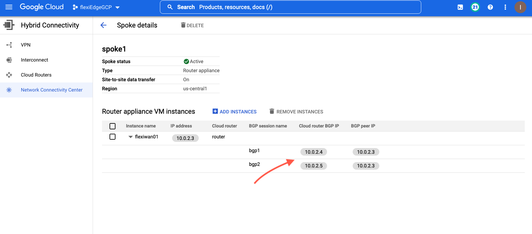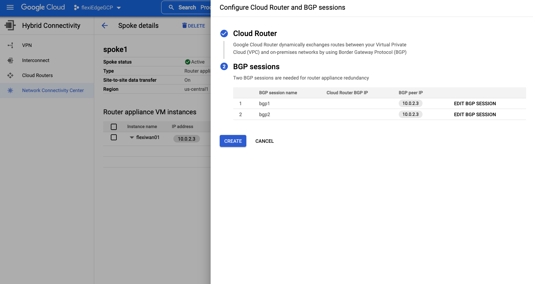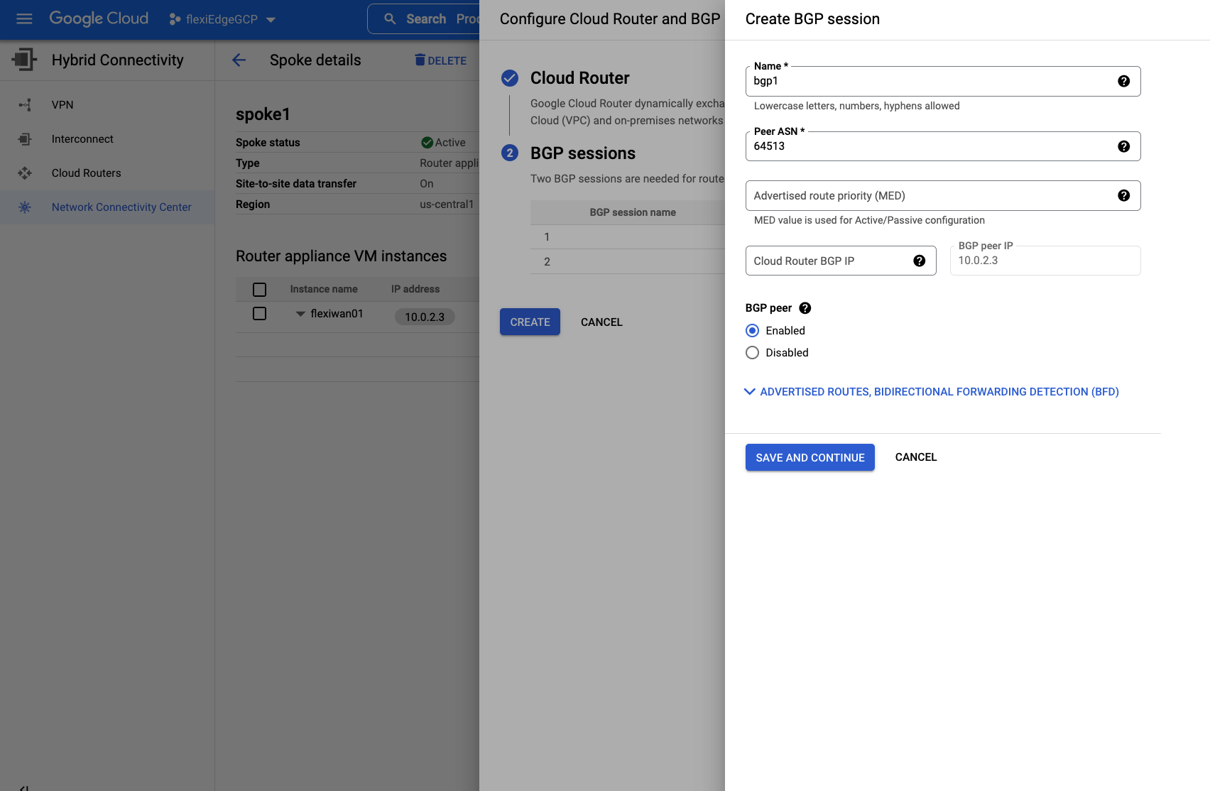 On the next screen, make note of Cloud router BGP IP’s, these will be BGP neighbours which need to be configured within flexiWAN.