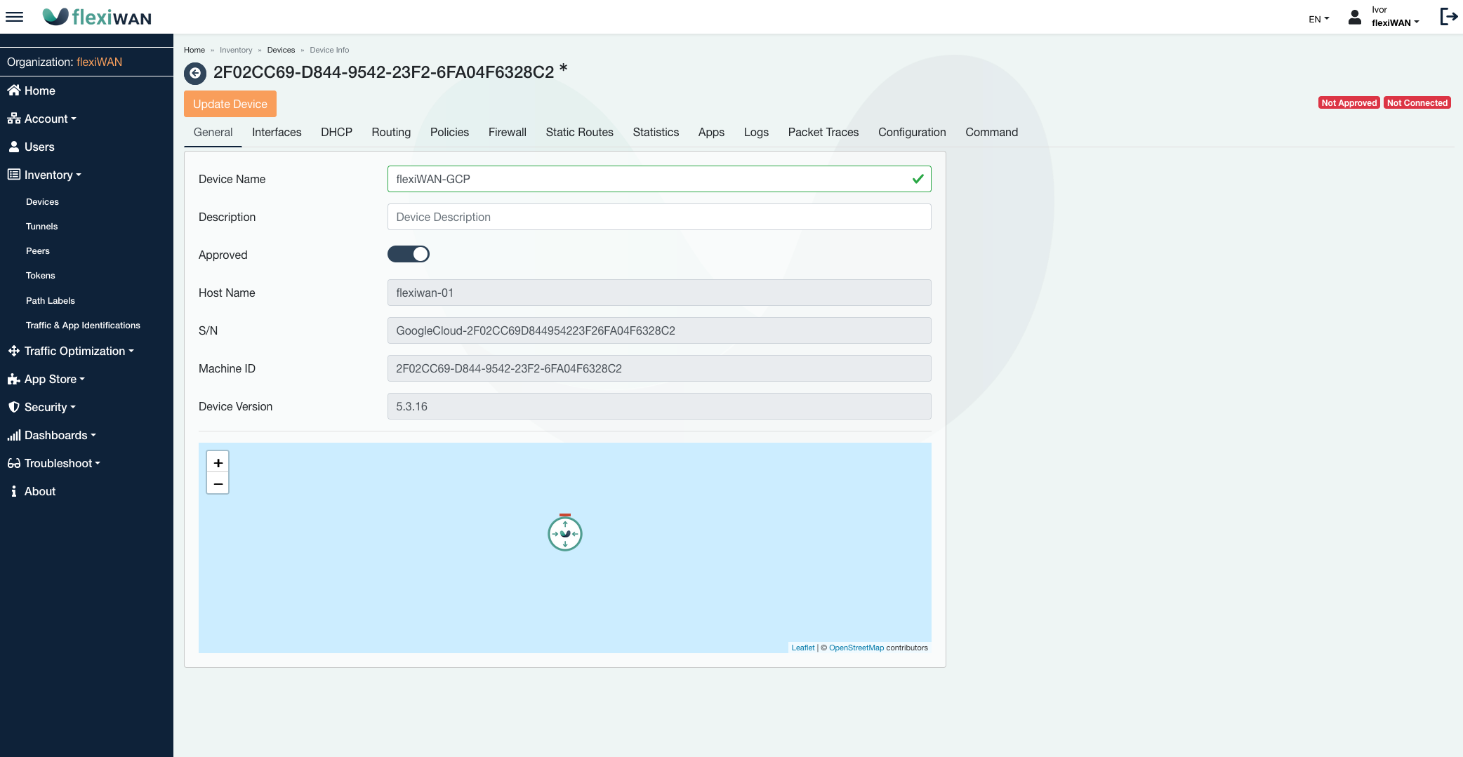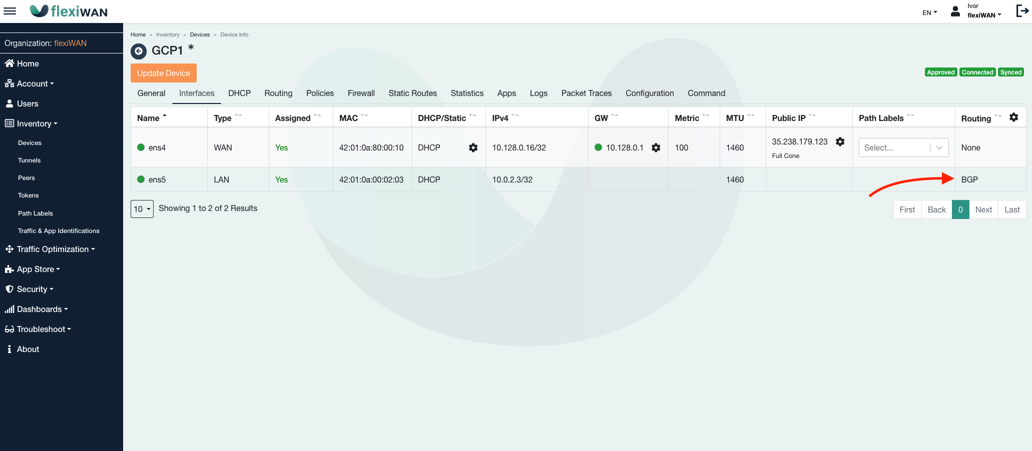 Now that BGP is configured and running on GCP, lets configure flexiWAN to peer with GCP. Navigate to flexiWAN instance created in steps above.