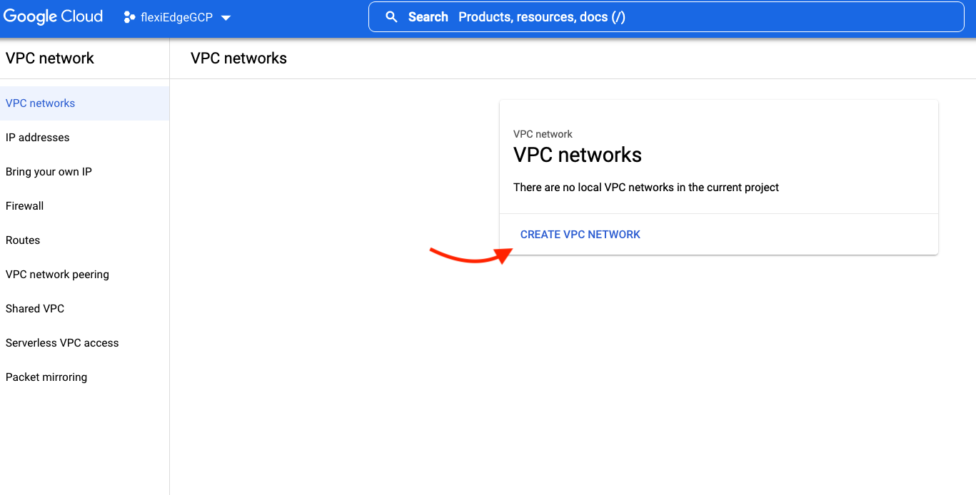The following section covers how to create WAN and LAN VPC networks and deploy a VM with both VPC networks attached on GCP. This is handled via VPC networks section in Google Cloud. It is recommended to remove the default VPC network before continuing.