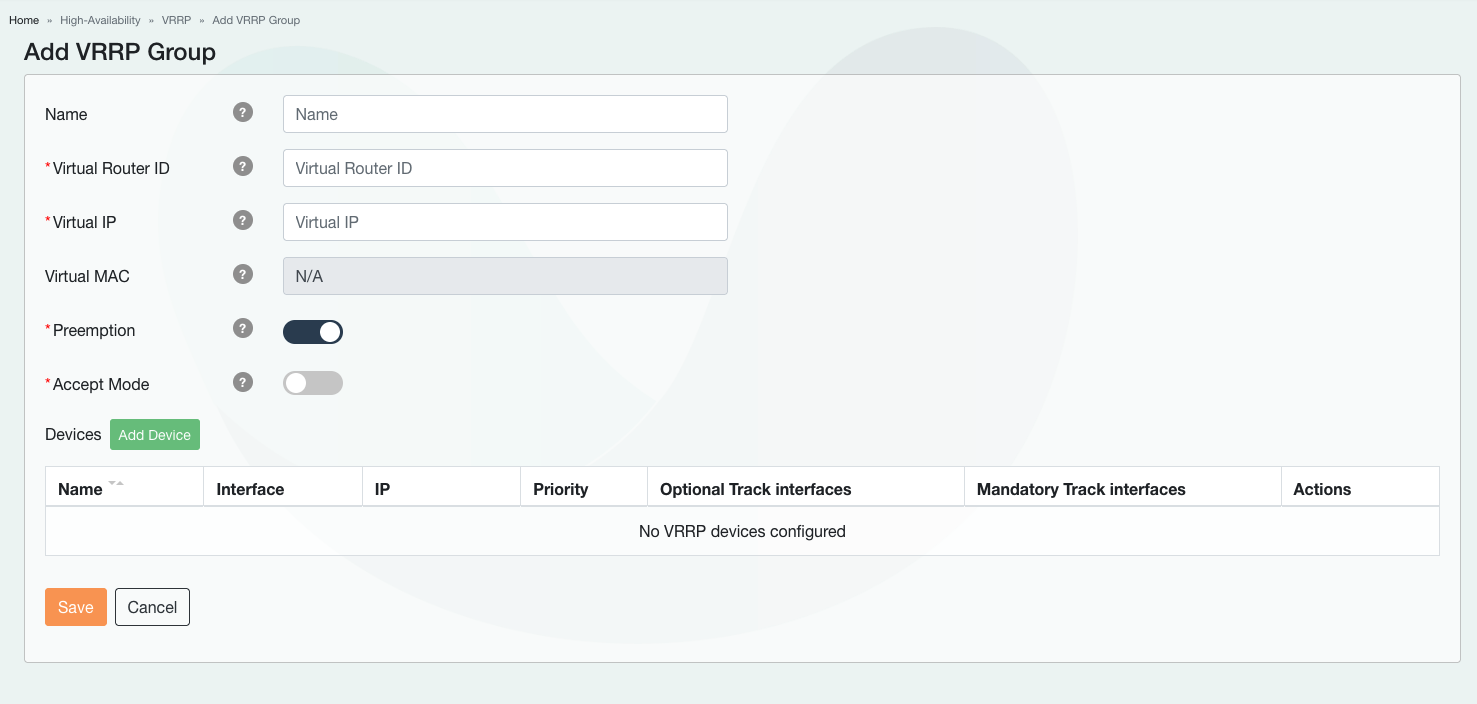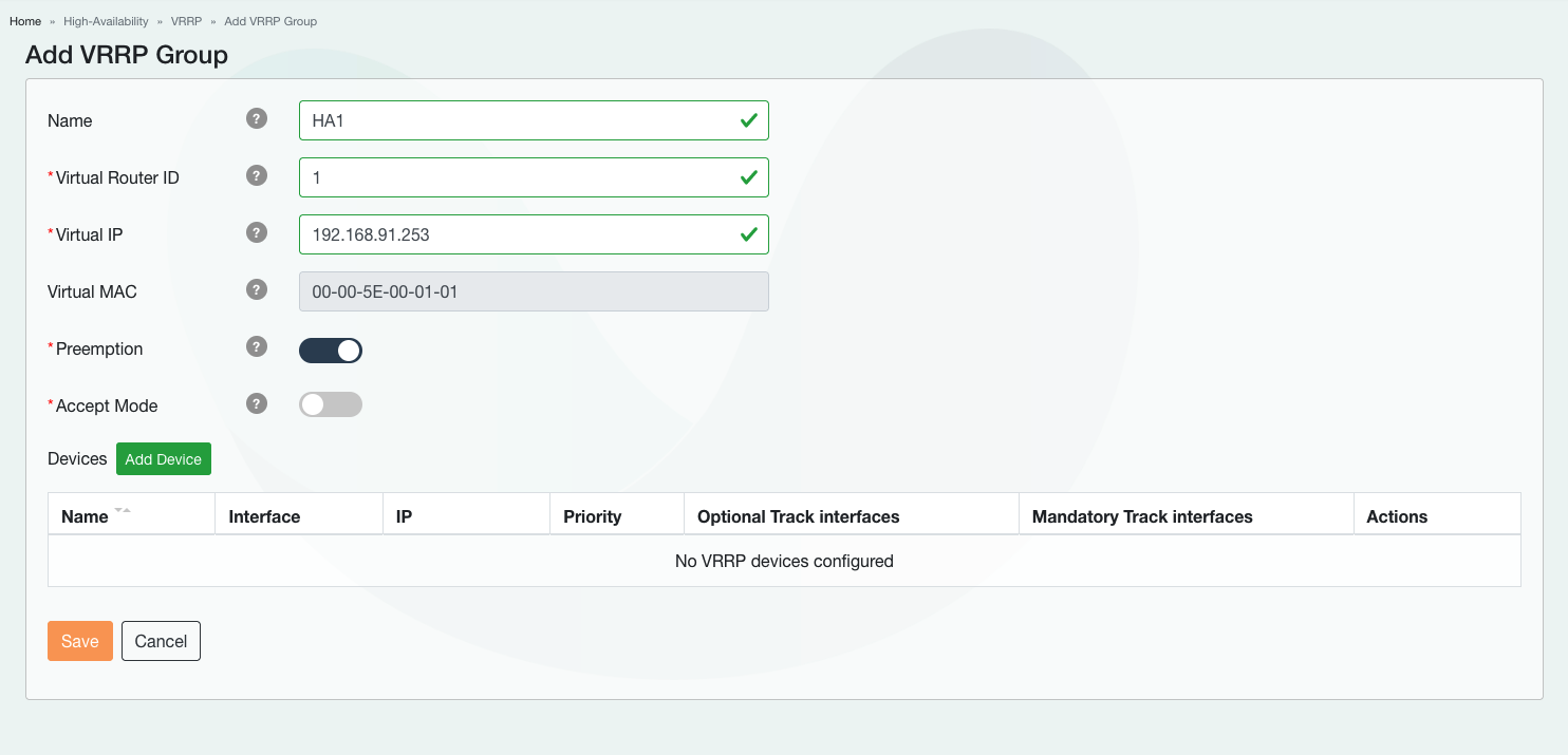 Confirm both devices are added and click save to enable High Availability / VRRP.