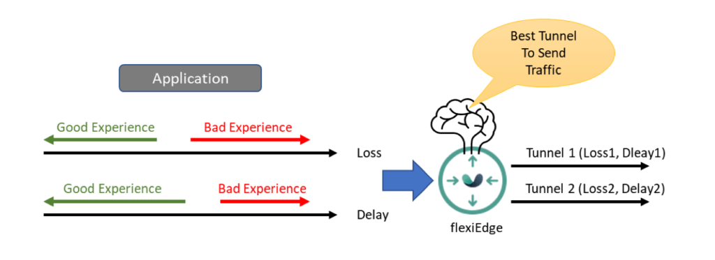 Through this feature, flexiWAN enables dynamic routing decisions as part of the path selection policy according to the application and link performance. The path selection decision is fully autonomous and does not require any threshold configuration. Instead, it estimates the application requirements for optimal delivery and quality and according to the application service class, it determines the best tunnel to send the traffic on. The system measures, balances and selects the optimal tunnel (or tunnels) among all available paths in order to meet the following goals: