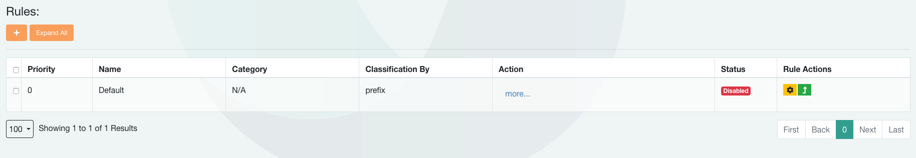 Each rule has a priority, with 0 being highest priority. Selecting each rule will allow moving rule up or down the priority list.