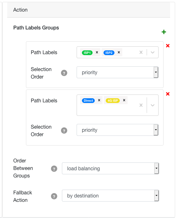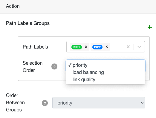 With selection order users can specify how traffic is ordered between Path Labels, supporting priority (failover), load balancing or link quality.