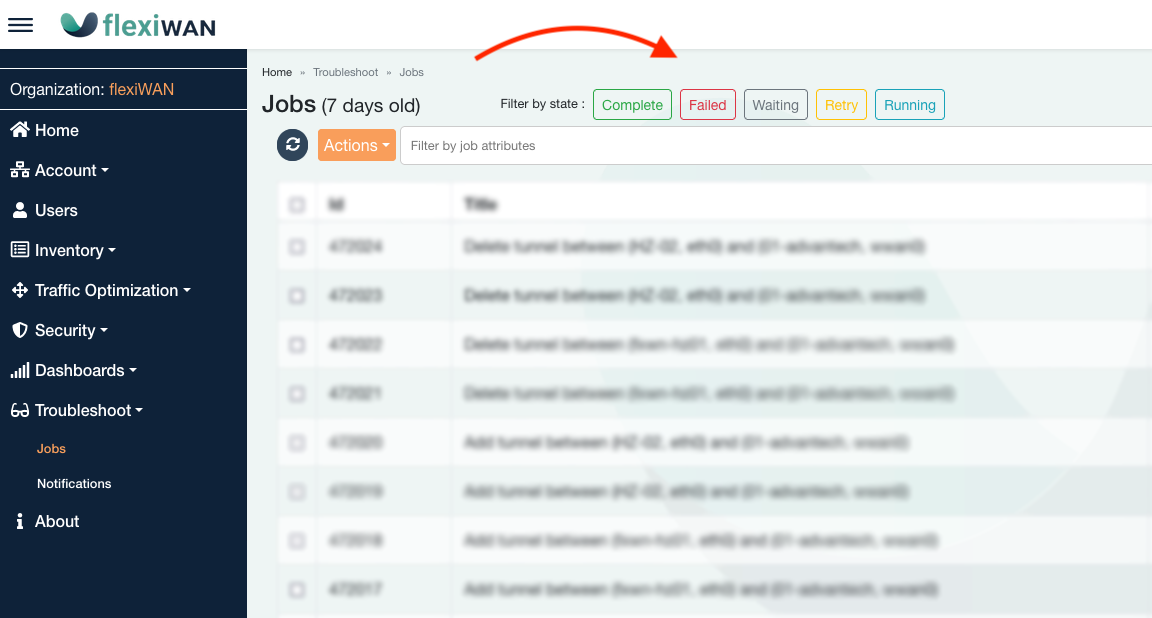 Jobs can be filtered by their status. Simply select the status as a filter.