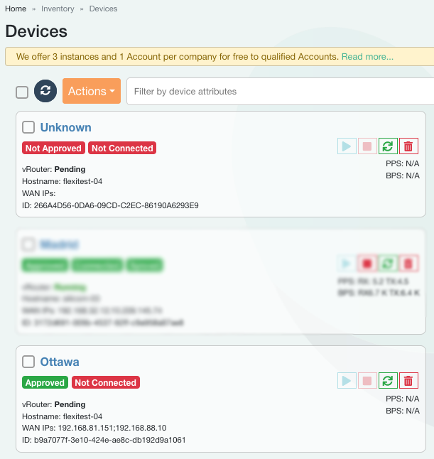 That’s it, flexiEdge device has been restored. the new device will now appear as connected and in not running state. Please make sure to verify all configuration is correct before starting vRouter.